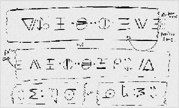 we are looking at are 3 rows of very enigmatic inscriptions. Actually,